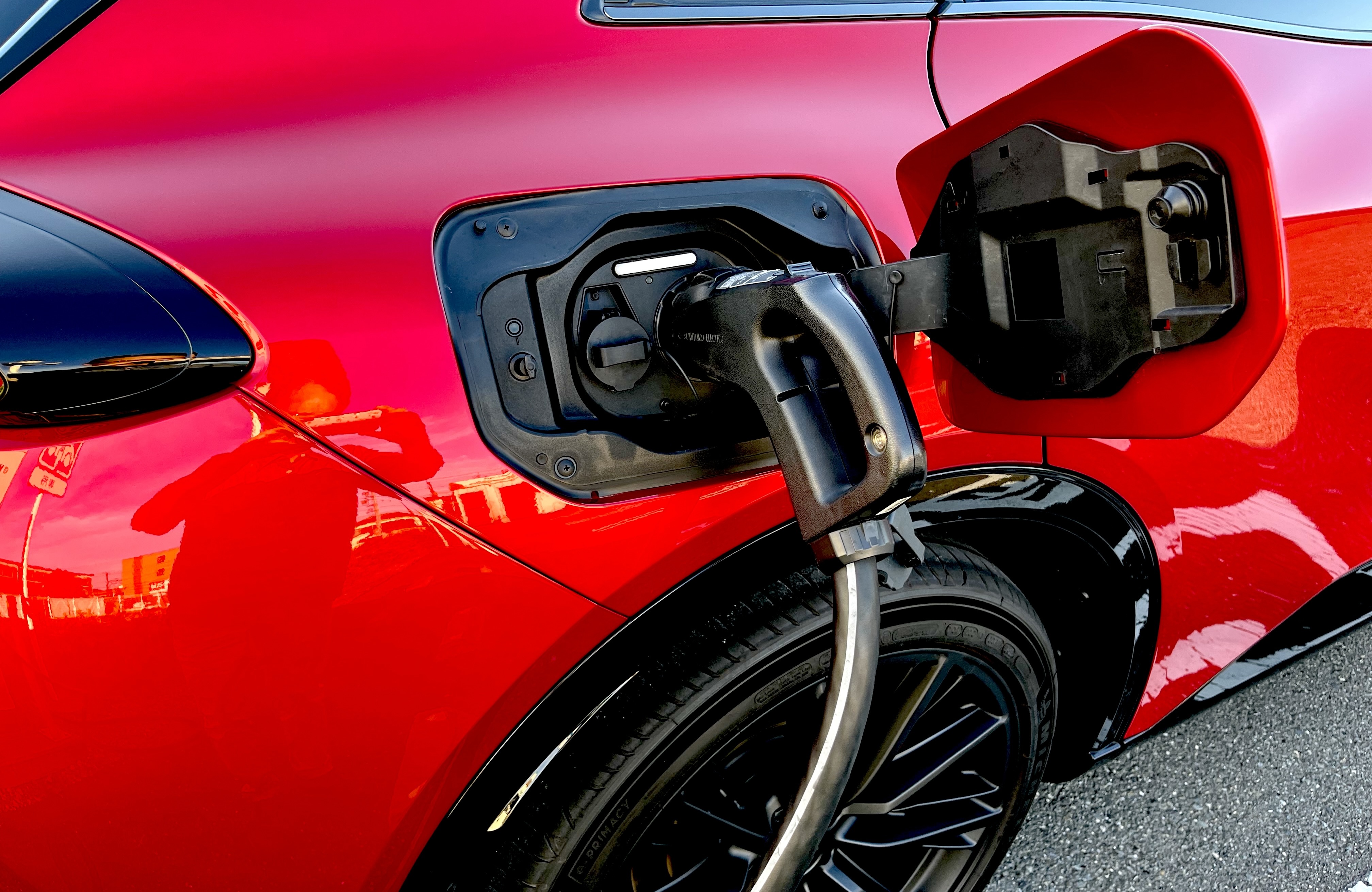 バッテリー容量は71.4kWhで、航続距離は最長599km。急速充電口は車両左側のフロントフェンダー上部に設置されています。